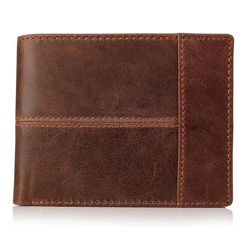 กระเป๋าสตางค์หนังแท้สำหรับผู้ชายหนังวัว aniline เงา-กระเป๋าสตางค์หนังโลโก้ตามสั่งคุณภาพสูง