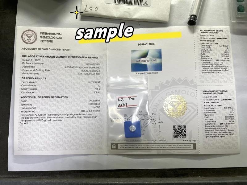 เพชรแท้เม็ดเดี่ยว 0.5 กะรัต 1 กะรัต 3 กะรัต 5 กะรัต 8 กะรัต HPHT CVD เพชรเพาะเลี้ยงในห้องปฏิบัติการ รับรองคุณภาพ เม็ดใหญ่ ทรงกลม สีขาวระยิบระยับ สำหรับทำเครื่องประดับ