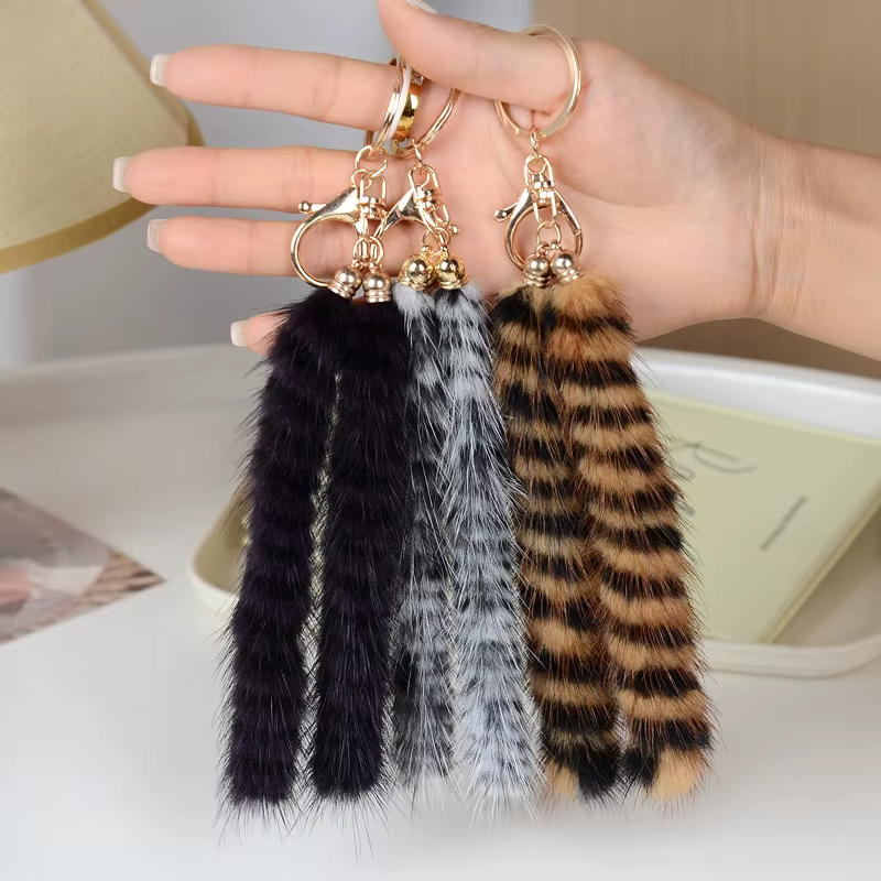 กระเป๋าขนมิงค์แท้มีหางกระเป๋าทรงเสน่ห์พวงกุญแจรถมินิย้อมสีน่ารัก