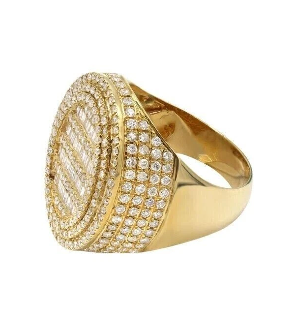 Real Moissanite 3.50Ct Round Cut Men's Cluster Pinky Ring 14k Yellow Gold Plated Modern Moissanite Ring