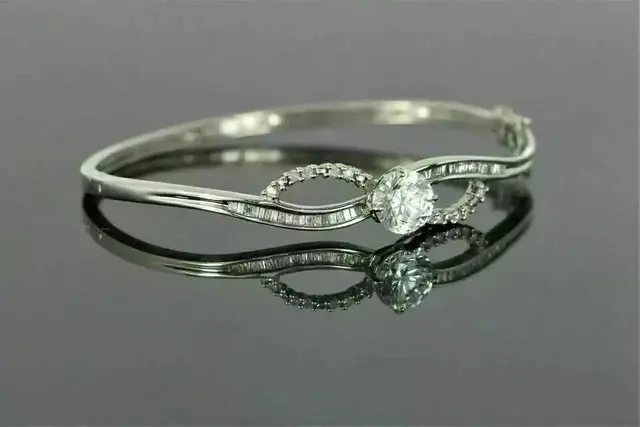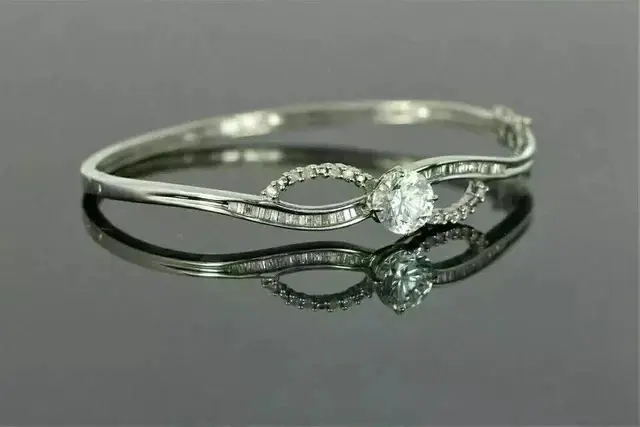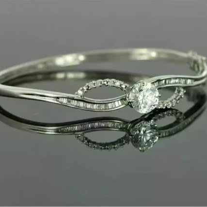 กำไลข้อมือเงินแท้ชุบทองประดับเพชรโมอิสซาไนต์แท้ทรงกลม 4.00 กะรัตสำหรับผู้หญิง