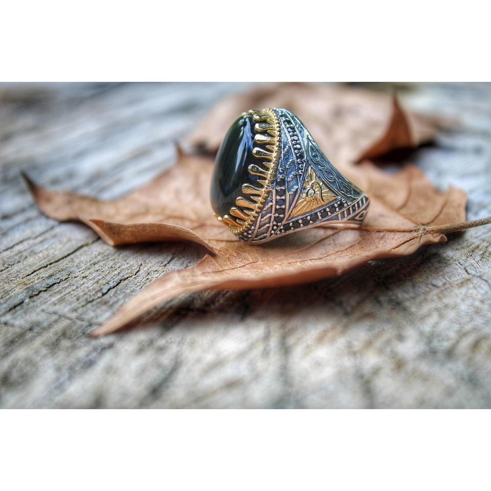 แหวนเงินสเตอร์ลิงแท้925แท้ทำด้วยมือหินอาเกตแท้หรูหราทันสมัยสไตล์วินเทจรุ่นมาใหม่