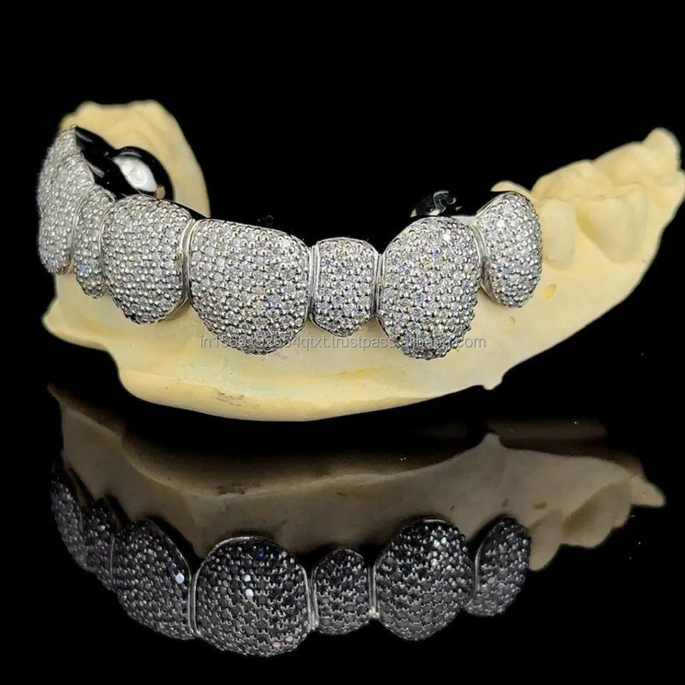 Real S925 Fully Iced Rapper Moissanite Teeth Grillz Bust Down Deep Cut Custom D Color Moissanite Grillz