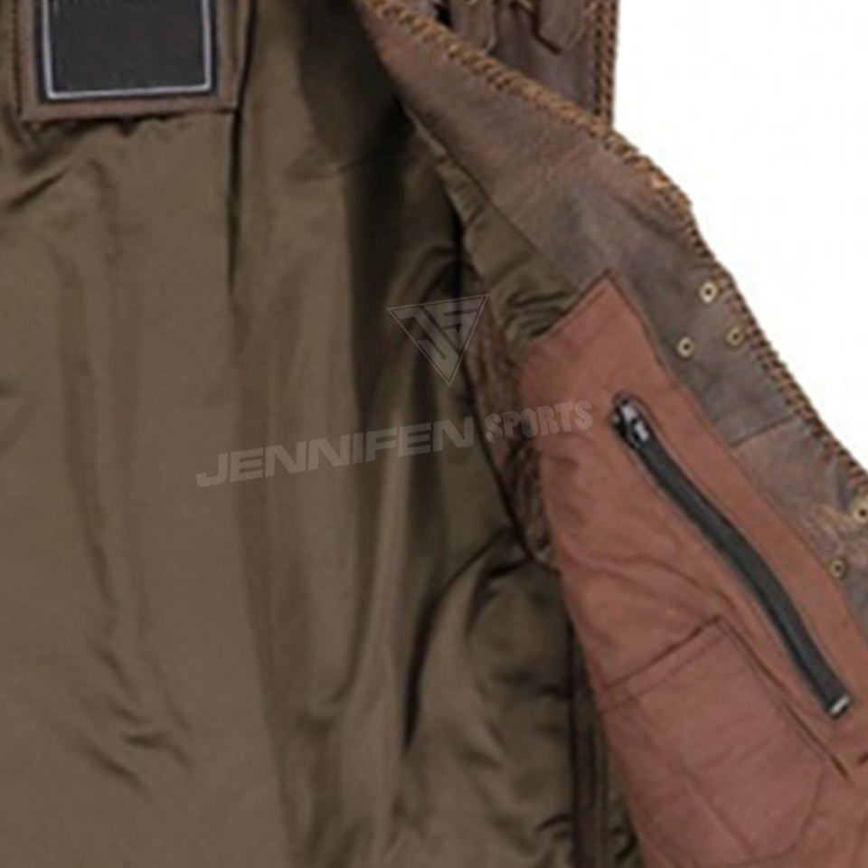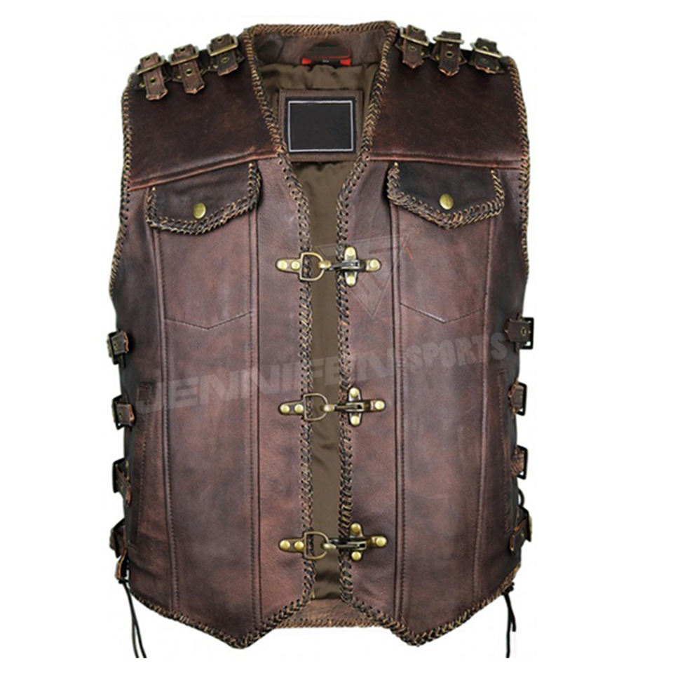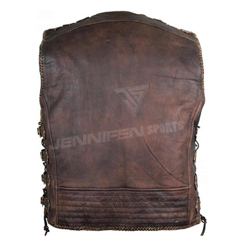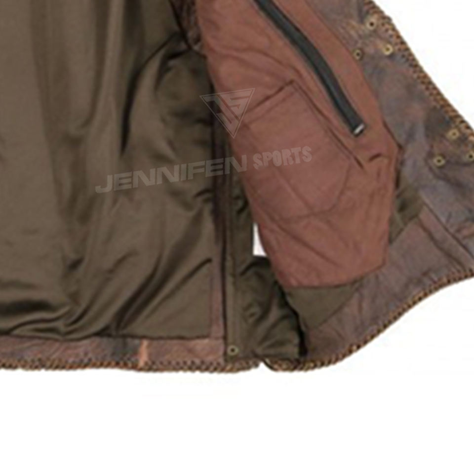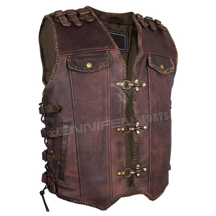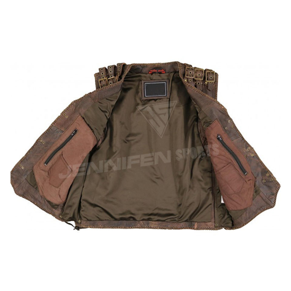 Real Sale Motorcycle Leather Vest Made From Genuine Cowhide Leather Front Chest&Side Pockets Hooks Closing Inside Cotton Lining