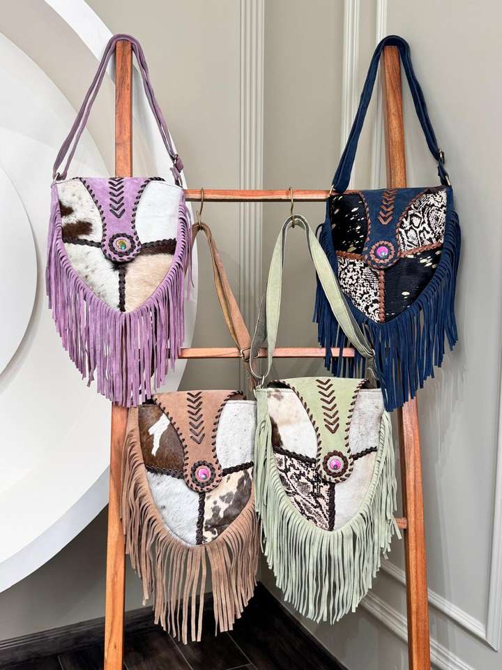 Product name:Hair On Cowhide Suede Leather Fringe Purse