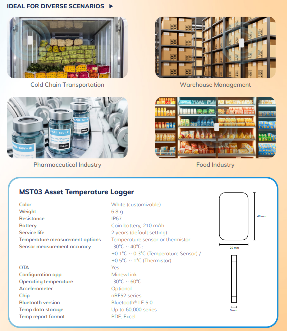 เครื่องบันทึกข้อมูลอุณหภูมิแบบเรียลไทม์ พร้อมแท็กติดตามสินค้า Ibeacon Ble Bluetooth เซ็นเซอร์วัดอุณหภูมิ สำหรับโซ่ความเย็น