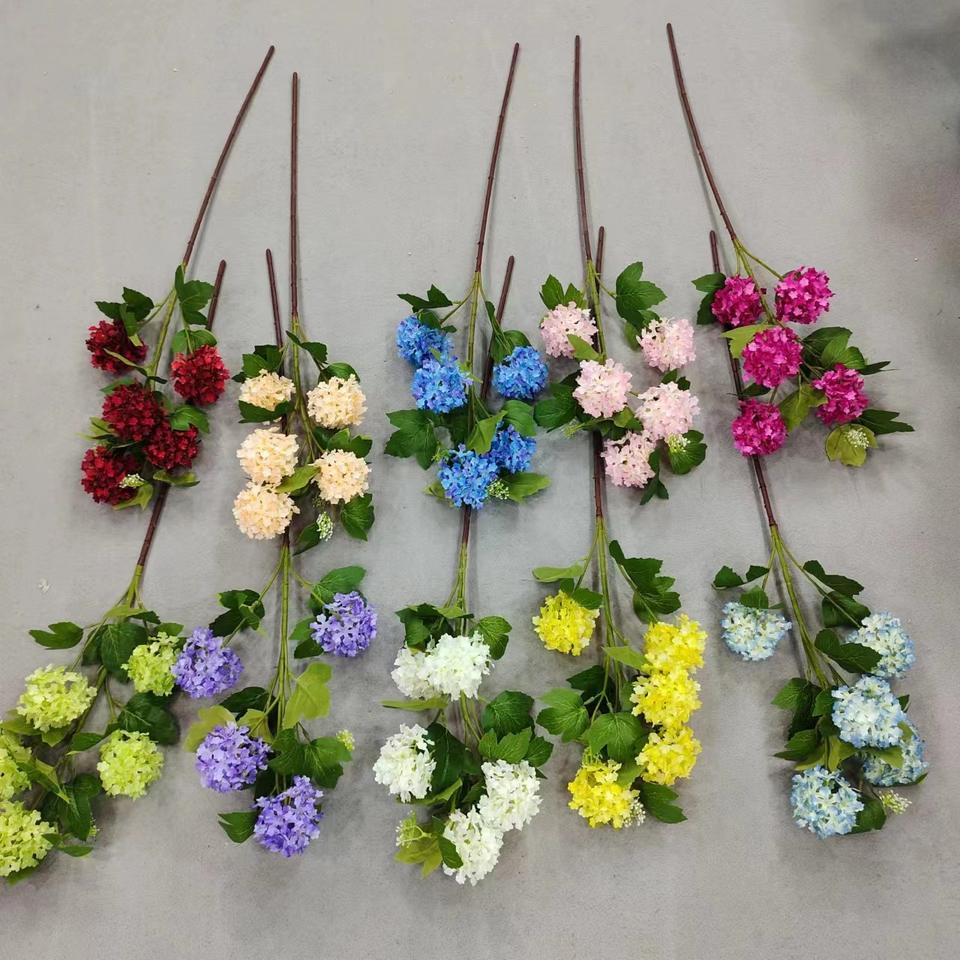 ดอกไฮเดรนเยียสัมผัสจริง5หัวสำหรับดอกไม้ประดิษฐ์ที่เก็บรักษาไว้สีเขียวสีขาวสีฟ้าแห้งจำนวนมาก
