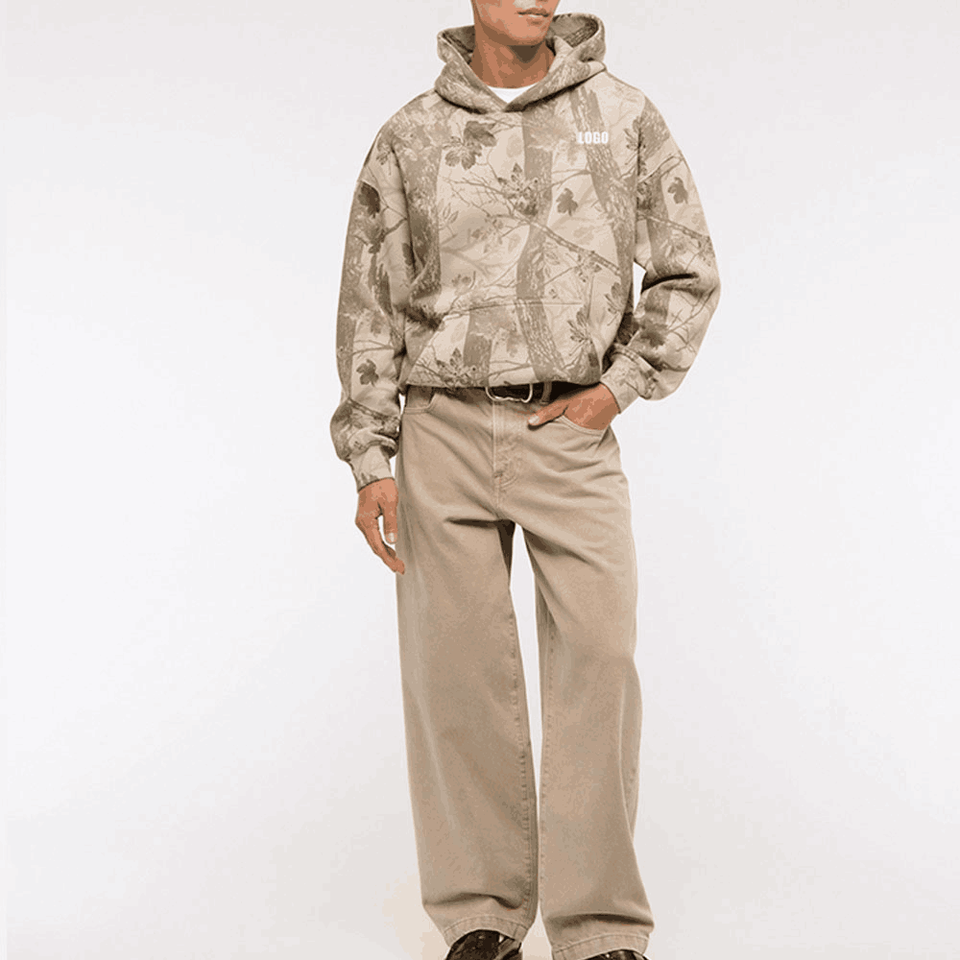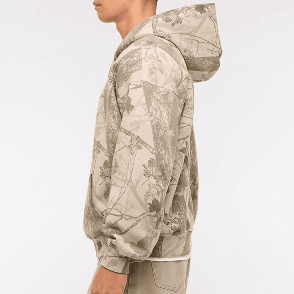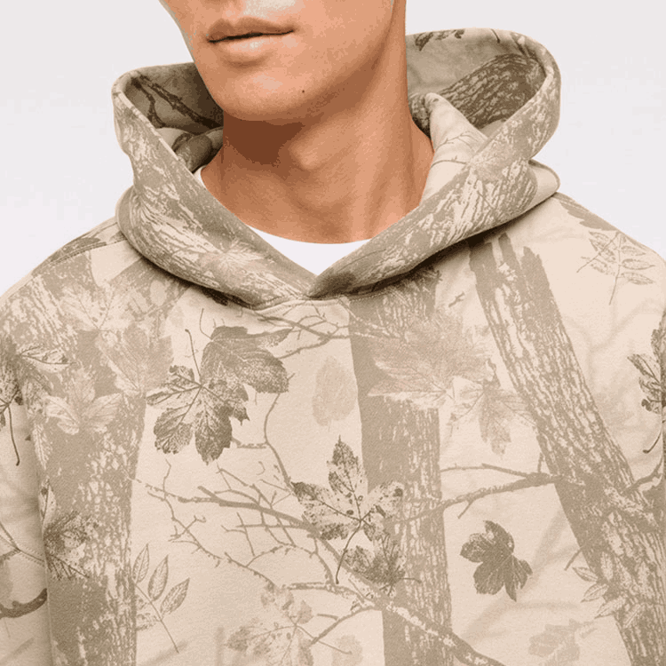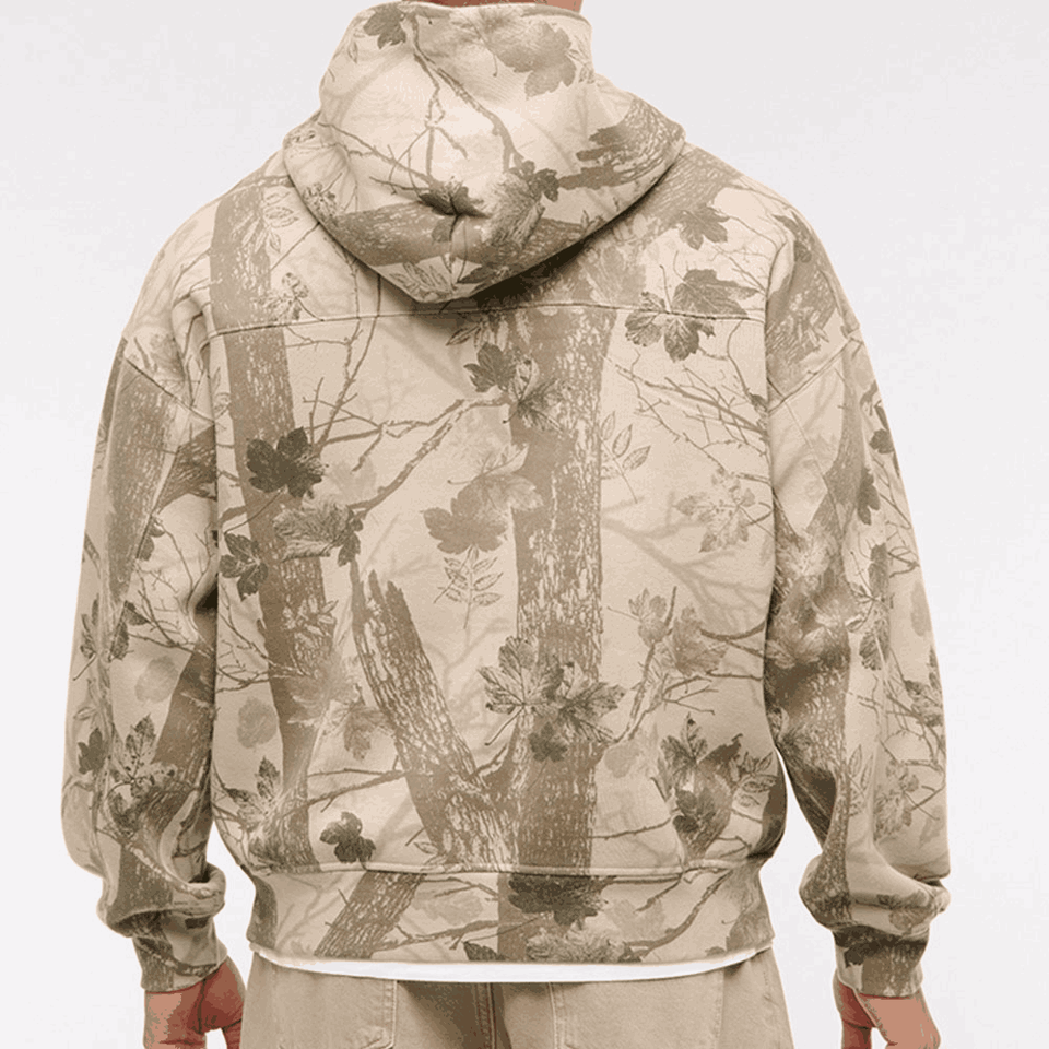 เสื้อมีฮู้ดผ้าฟลีซโอเวอร์ไซส์ผ้าคอตตอนหนาพิมพ์ลายพรางใส่ล่าสัตว์ในป่า