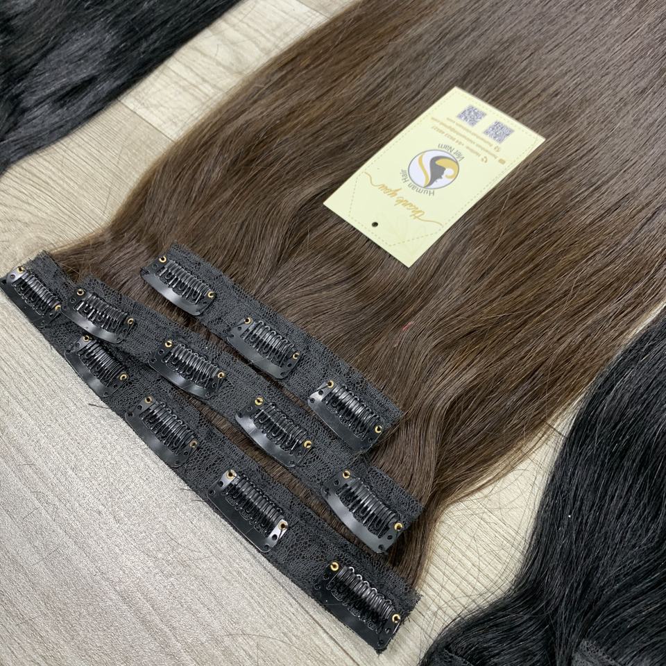 ผมต่อแบบคลิปผมคนเวียดนามแท้8-32นิ้วปรับแต่งได้สีธรรมชาตินุ่มและเรียบเนียน