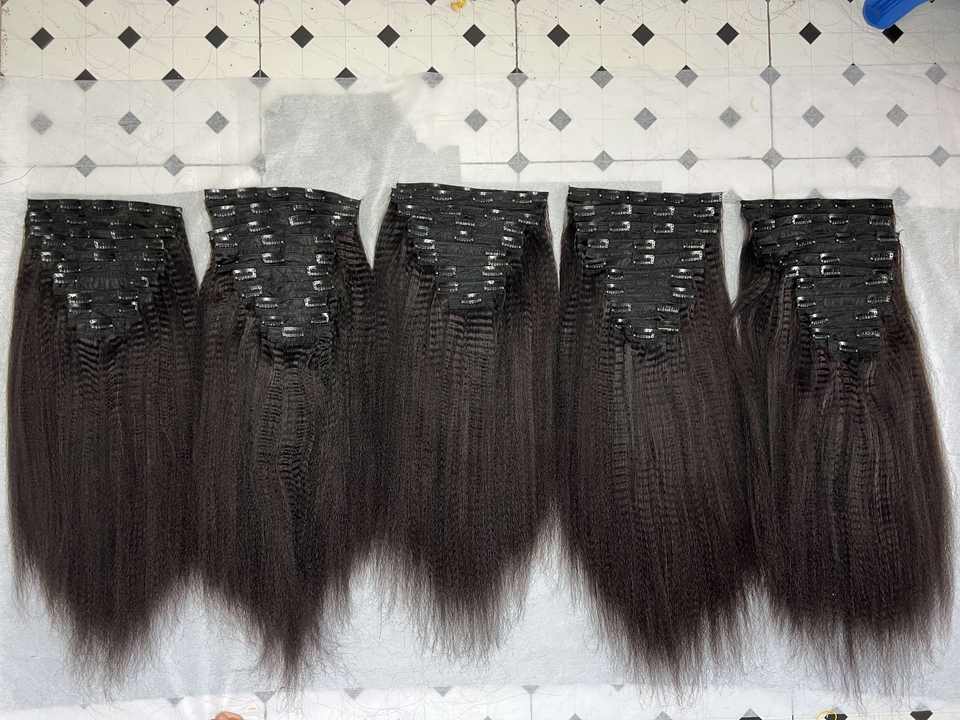 ผมต่อแบบคลิปหนีบ ทำจากผมแท้ของคนเวียดนาม ความยาว 14 นิ้ว ชุด 8 ชิ้น แบบตรงหยิกเป็นลอนและทุกสี