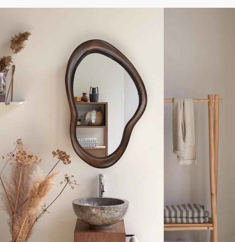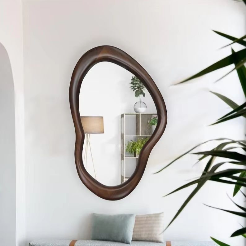 Real Walnut Wooden Frame Asymmetrical Mirror Wavy Irregular Vanity Mirror for Bathroom Bedroom Art Deco Perfect Home Decor