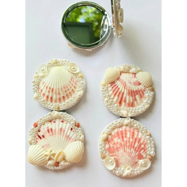 กระจกเปลือกหอยจริงสำหรับใช้ในกระเป๋าสตางค์ที่สมบูรณ์แบบสำหรับความงามในระหว่างการเดินทางคอลเลกชั่นเครื่องสำอางแบบสัมผัสและของขวัญในธีมเขตร้อน