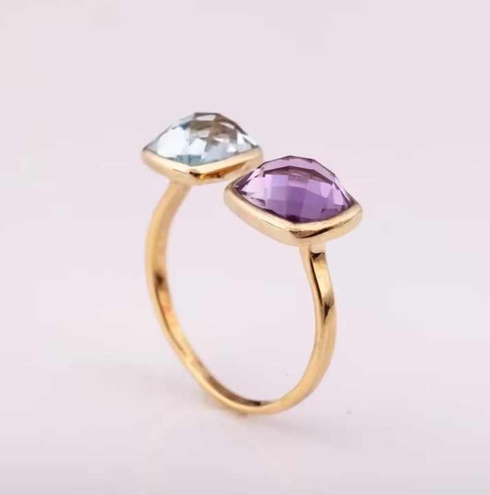 แหวนเงินแท้แท้เกรด925สีทอง14K & ชุบโรเดียมอัญมณีเพชรโทแพซอเมทิสต์สีฟ้าธรรมชาติสำหรับงานปาร์ตี้