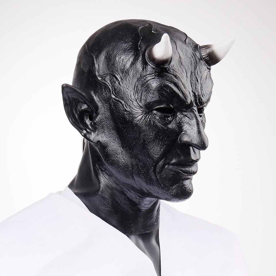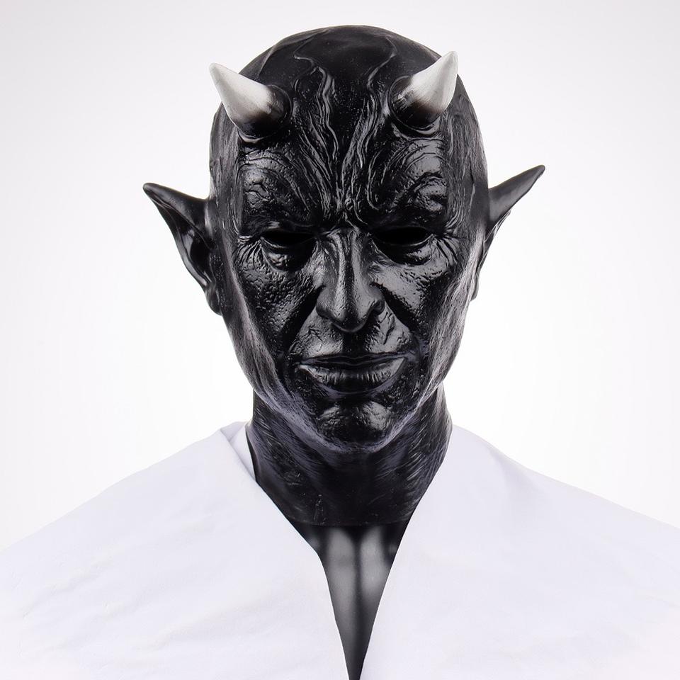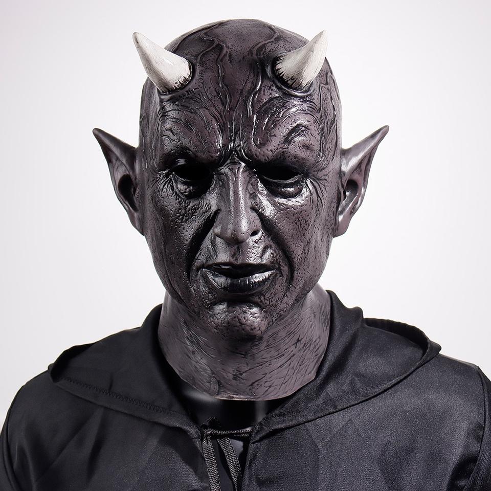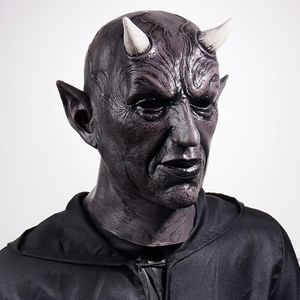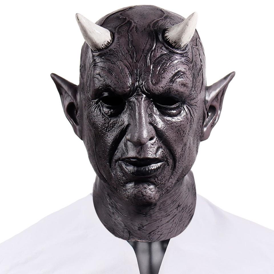 หน้ากากฮาโลวีนแบบสมจริงหน้ากากไดอาโบลฮาโลวีนหน้ากากหมวกกันน็อคยางปีศาจที่น่ากลัวพร้อมถุงมือเต็มหน้ารูปทรงผีสำหรับปาร์ตี้