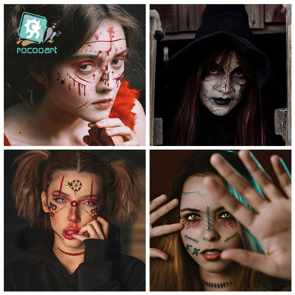 รอยแผลเป็นปลอมเหมือนจริง แผลเป็นเลือด แผลจากซอมบี้ แวมไพร์ แมงมุม รอยแผลเป็นจากการเย็บ รอยสักเลือด สติ๊กเกอร์รอยแผลเป็น รอยสักชั่วคราวสำหรับฮาโลวีน