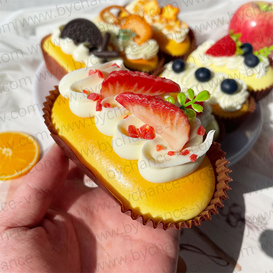 โมเดลเค้กไข่เจียวมะม่วงปลอมเหมือนจริง สำหรับตกแต่งภายในบ้านสไตล์โมเดิร์น และตกแต่งโต๊ะอาหารในห้องครัว
