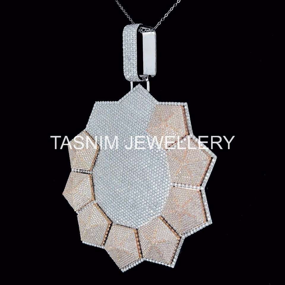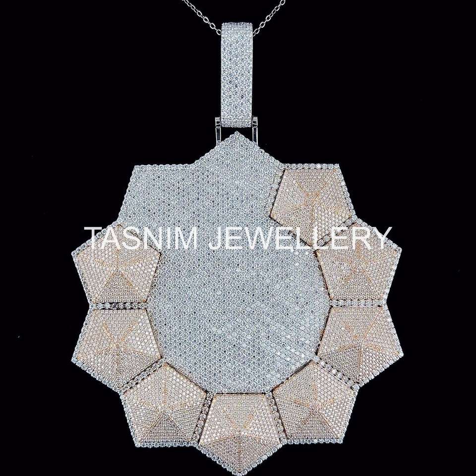จี้ห้อยคอคริสเตียนฮิปฮอปประดับเพชรโมอิสซาไนต์ทรงเหลี่ยมเจียระไนแบบเรียบหรู เหมือนเพชรแท้ ได้รับการรับรองจาก GIA ตัวเรือนเงินแท้ชุบทอง 10K ฝังแบบไมโคร