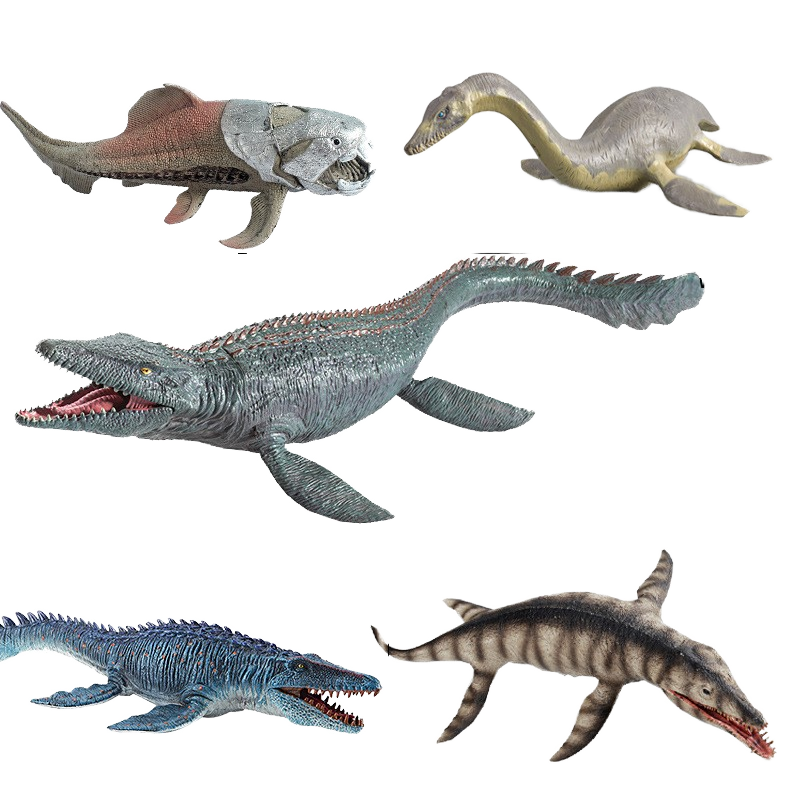 ของเล่นรูปสัตว์ยุคก่อนประวัติศาสตร์แบบจูราสสิกเหมือนจริงไดโนเสาร์โครนอซอรัสโมซาซอรัส dunkleosteus plesiosaur พลาสติก