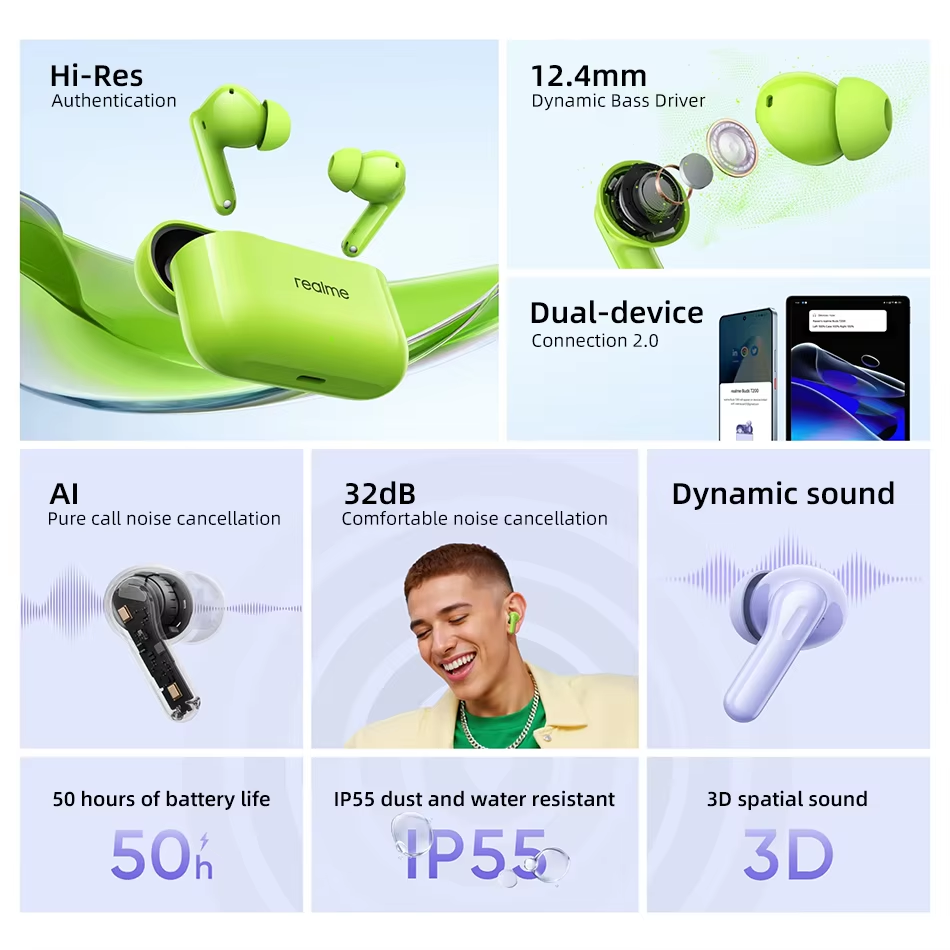 ชื่อผลิตภัณฑ์:หูฟัง realme T200เวอร์ชันสากล