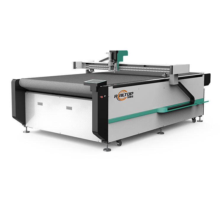 เครื่องตัดหนังอัตโนมัติ CNC แบบสั่นสะเทือน 9KW ควบคุมด้วย PLC ยี่ห้อ Realtop พร้อมมอเตอร์ปั๊ม รับประกัน 5+ ปี สำหรับกระเป๋าหนัง