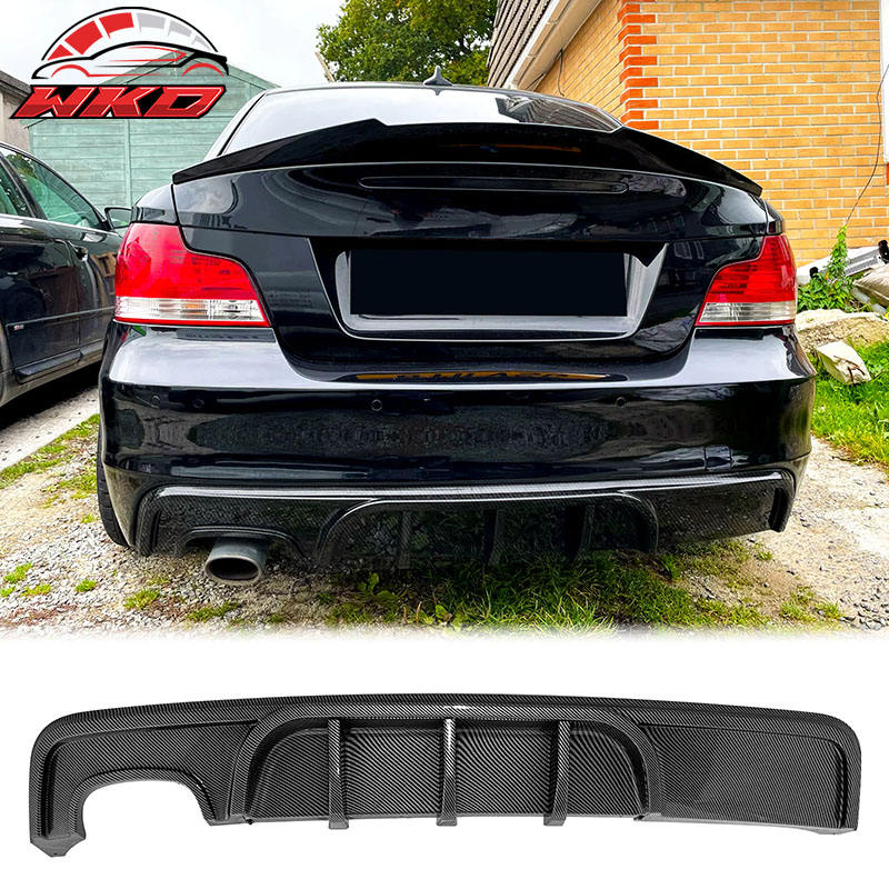 ลิ้นดิฟฟิวเซอร์หลัง สำหรับ BMW ซีรีส์ 1 รุ่น E82 E88 ปี 2008-2013 สปอยเลอร์ทรง MP วัสดุ ABS ลายคาร์บอนไฟเบอร์ อุปกรณ์ตกแต่งรถยนต์