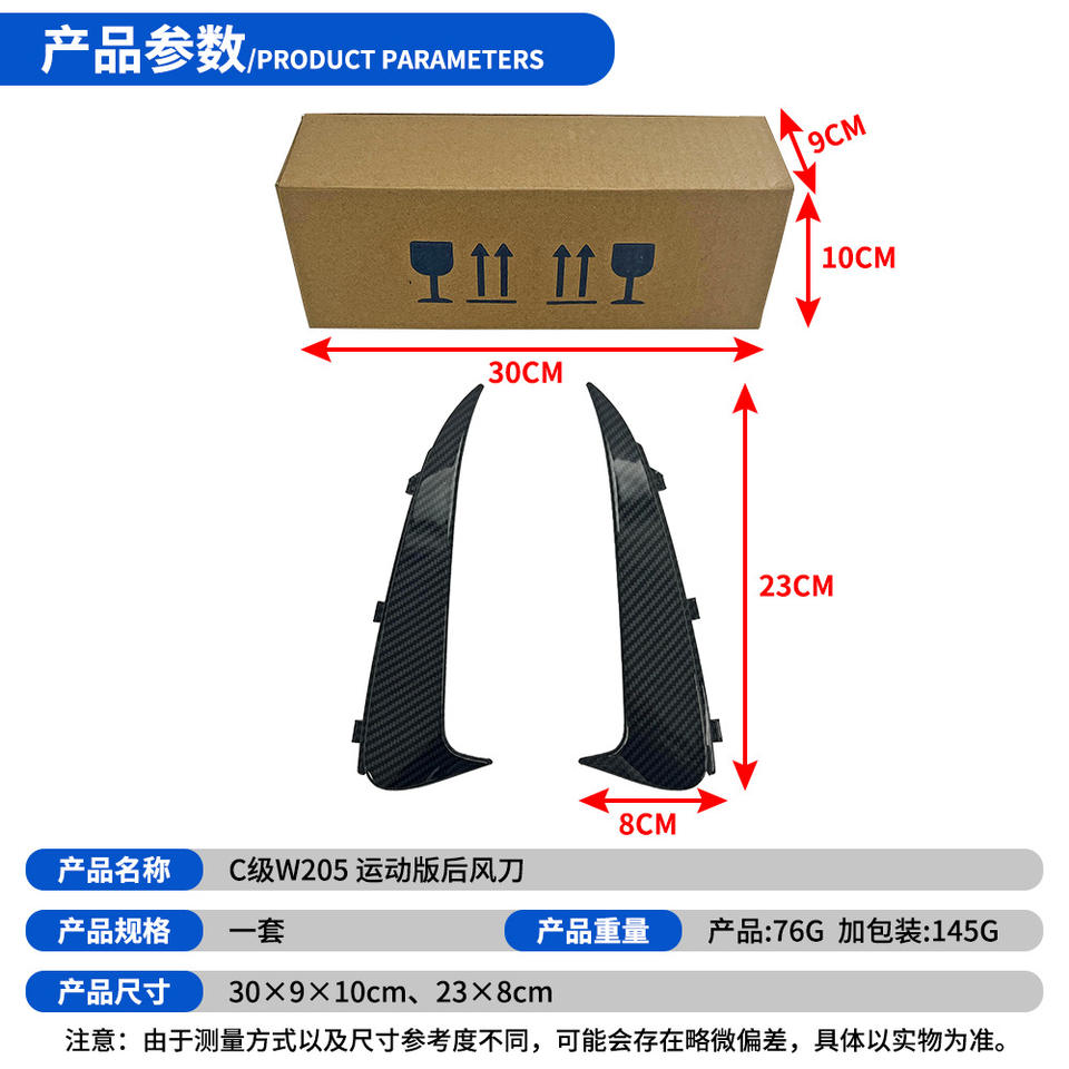 ใบพัดลมด้านหลังสำหรับรถเมอร์เซเดสเบนซ์ W205ซี-คลาส2015-2021ชุดบอดี้แบบสแน็ปอินสปอร์ตสไตล์คาร์บอนไฟเบอร์