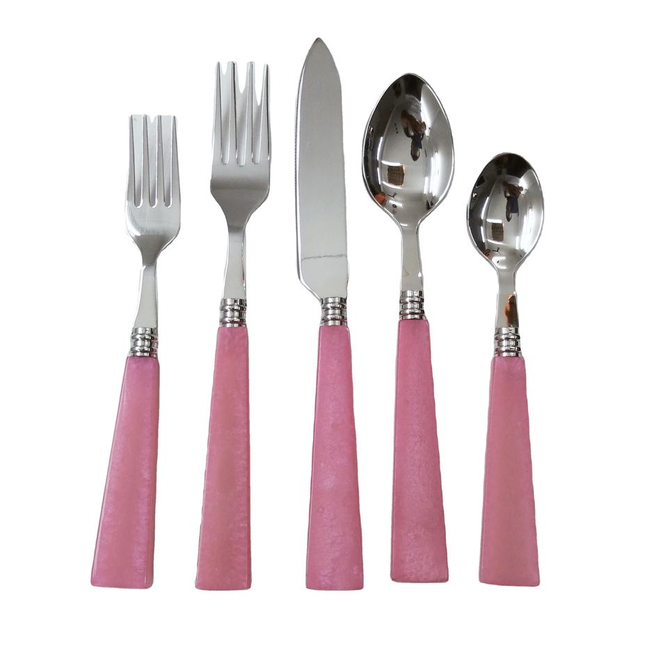 ชุดมีดและส้อมสแตนเลส5ชิ้นด้ามสีชมพู