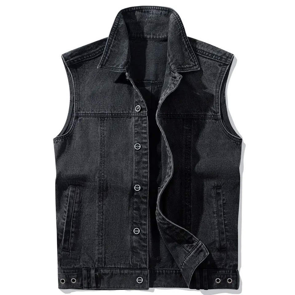 เสื้อกั๊กยีนส์แห้งเร็วสำหรับผู้ชายเสื้อลำลองแขนกุด