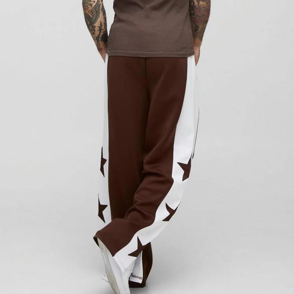กางเกงลำลองขายาวทรงหลวมสำหรับผู้ชายทรงตรงพิมพ์ลายเอง