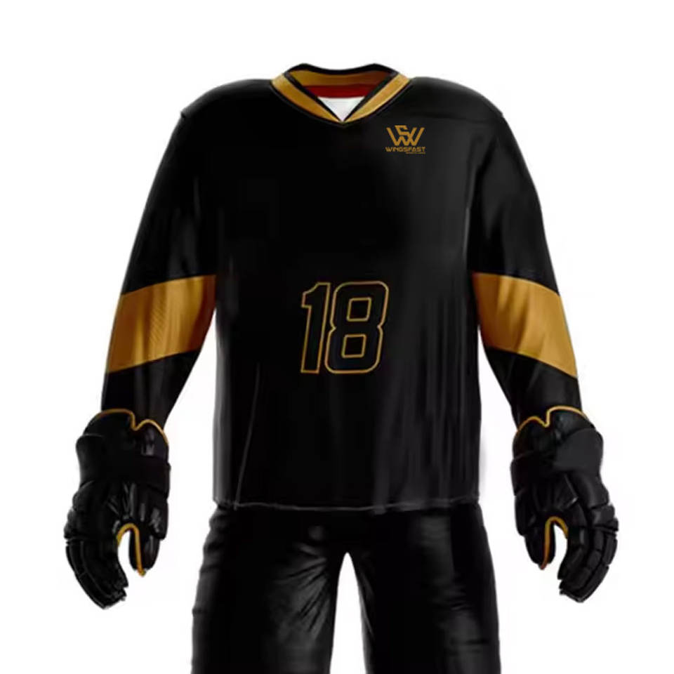 ชุดฮอกกี้น้ำแข็งแขนยาว ระบายอากาศได้ดี ราคาสมเหตุสมผล ผลิตจากโพลีเอสเตอร์ 100% รับผลิตตามแบบ OEM ขายส่ง คุณภาพดีที่สุด