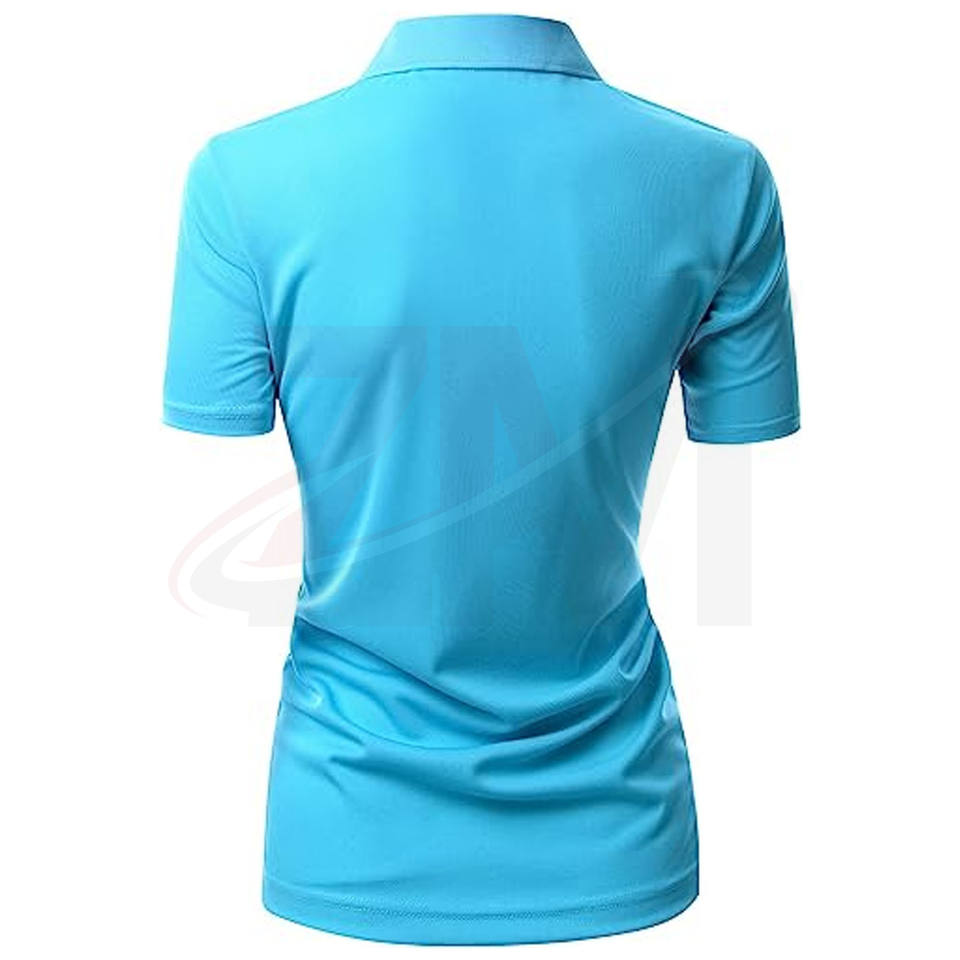 เสื้อโปโลผู้หญิงแฟชั่นใหม่สีน้ำเงิน 3 กระดุม ผลิตในปากีสถาน ราคาสมเหตุสมผล รับสกรีนโลโก้แบรนด์ตามสั่ง