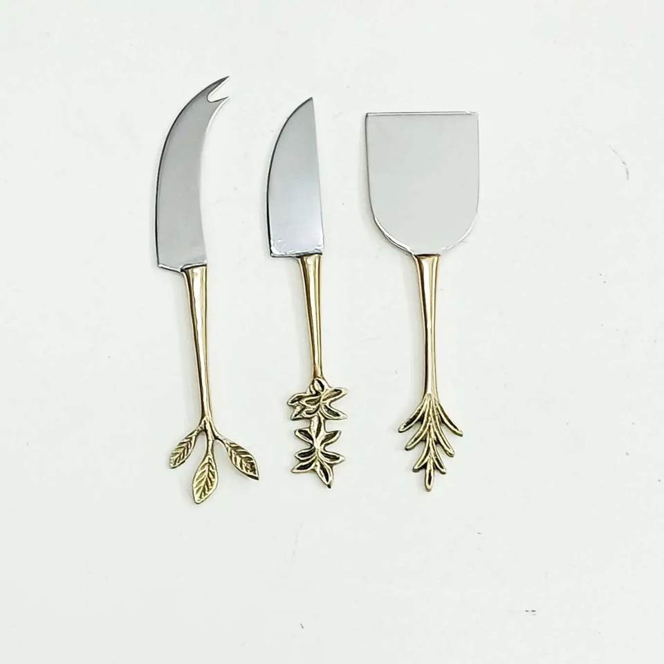 ชุดชีสโลหะราคาสมเหตุสมผลสำหรับใช้ในโรงแรมและร้านอาหาร ดีไซน์หลากหลาย ด้ามจับทองเหลือง ชุดชีสสแตนเลส