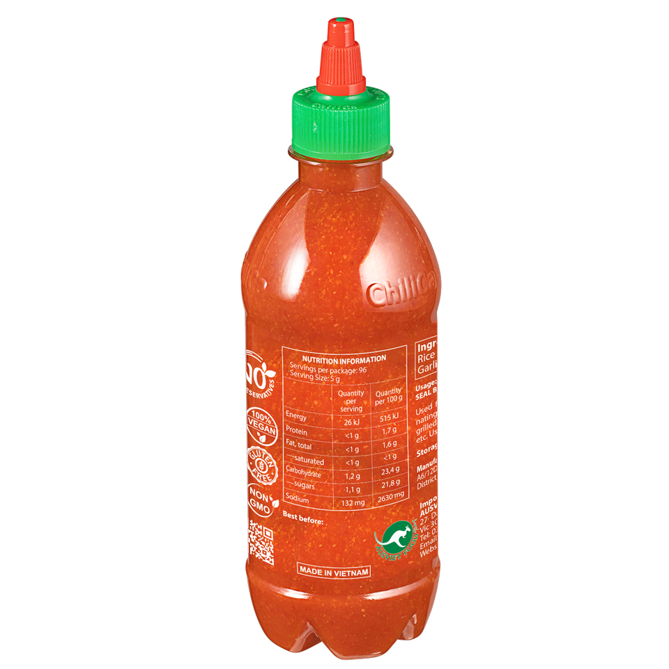 Chili (76.8%), garlic, rice vinegar, salt, sugar