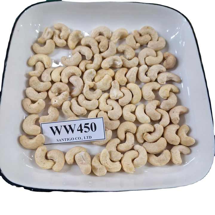 เม็ดมะม่วงหิมพานต์ซานติโกแบบคาจูนัทเม็ดมะม่วงหิมพานต์น็อกซ์เดอกาจู W450ส่งออกไปตะวันออกกลาง