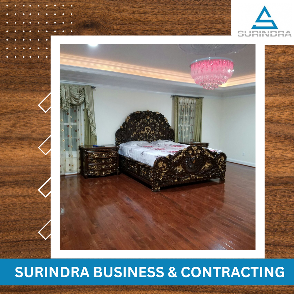 เตียงไม้เนื้อแข็งแกะสลักด้วยมือพร้อมโต๊ะข้าง