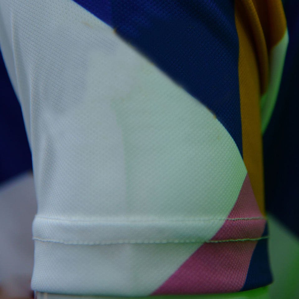 ตำแหน่งโลโก้:ด้านหน้า, ด้านหลัง, แขนเสื้อด้านซ้าย, แขนเสื้อด้านขวา, ขอบล่าง, หลังคอ