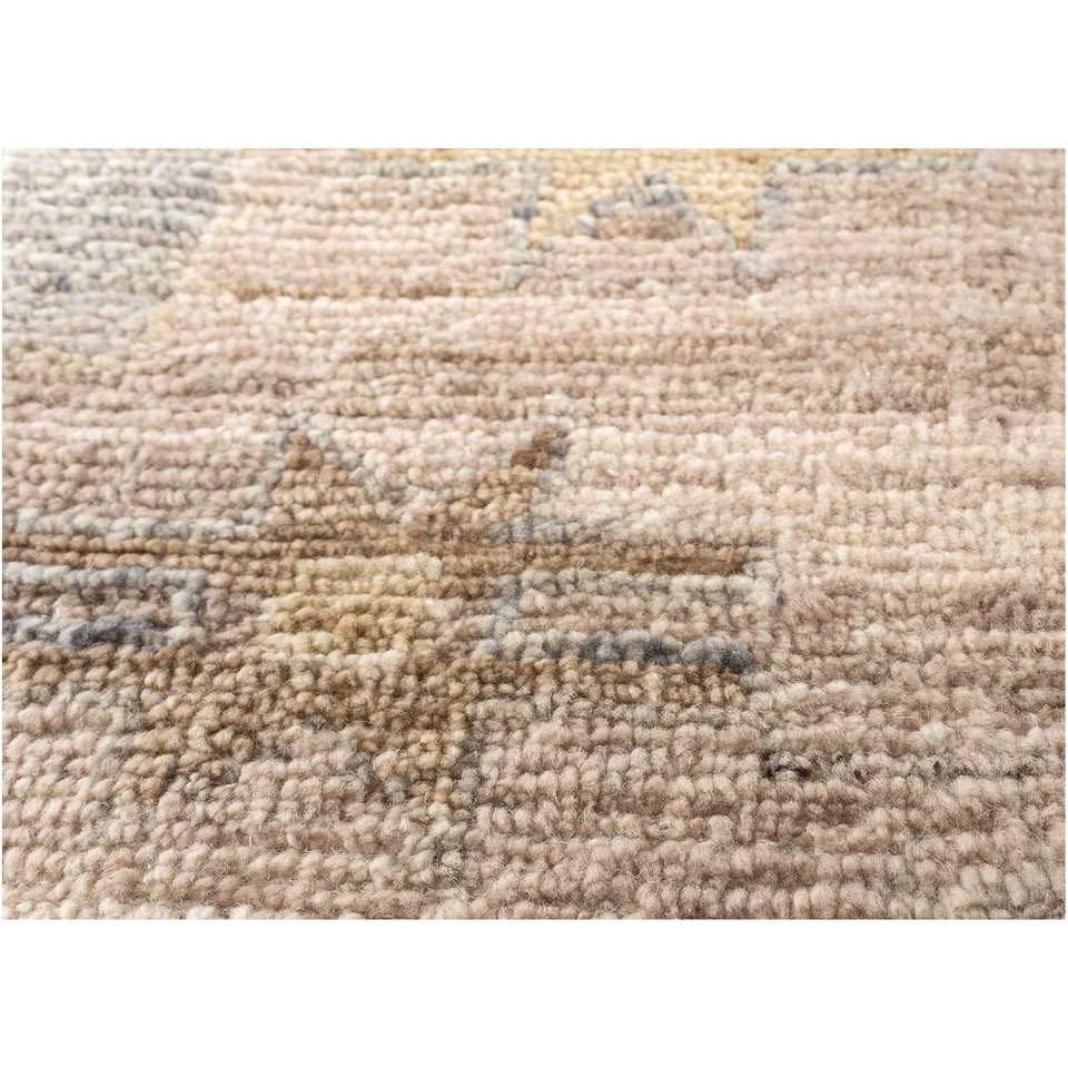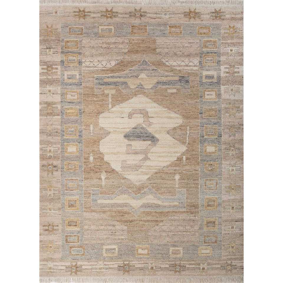 พรมขนสัตว์ถักมือลายเรขาคณิต Reb-1446 สีเบจและสีน้ำตาล สำหรับห้องนั่งเล่น ห้องโถง ทางเข้าบ้าน - สำหรับวัยรุ่น