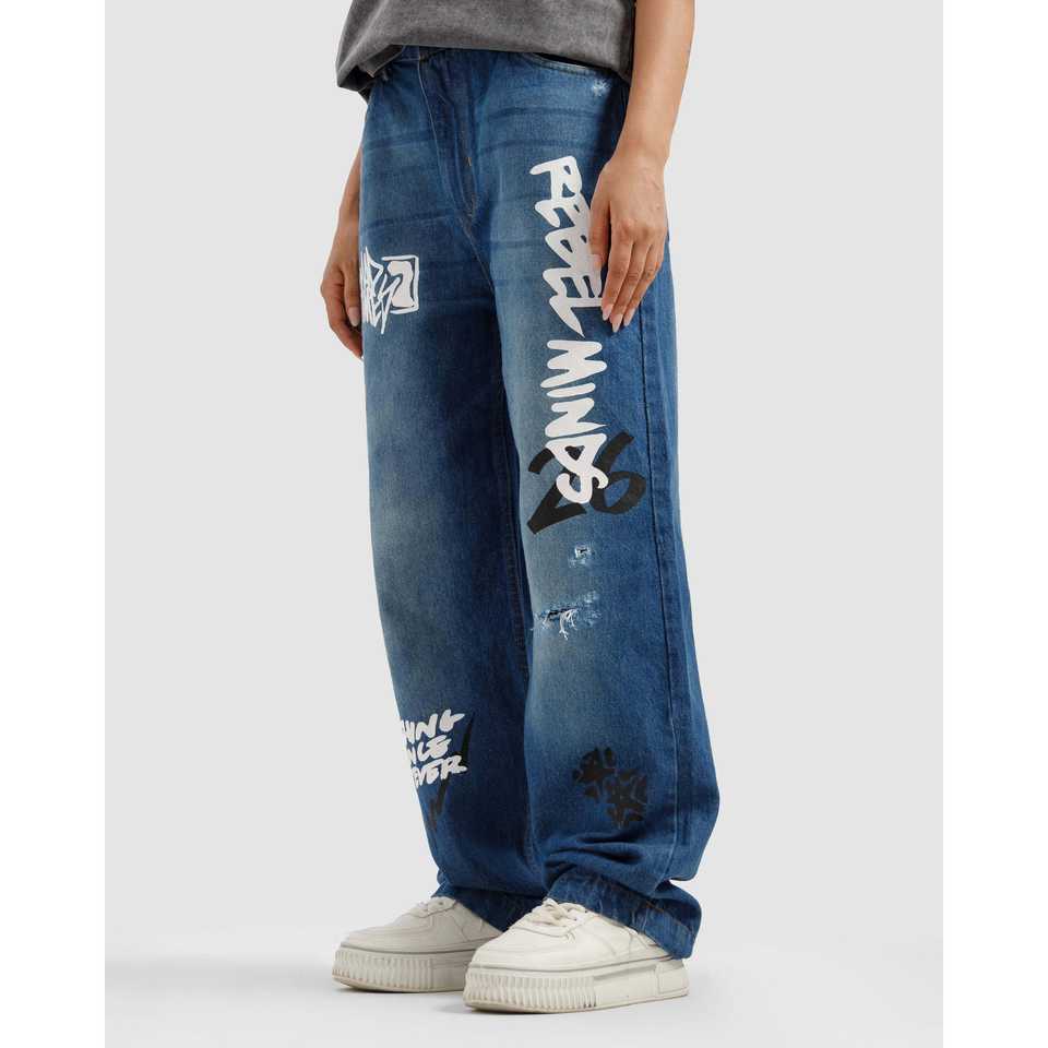 กางเกงยีนส์ทรงตรงสไตล์วินเทจ Rebel ผ้าเดนิมถักหลวมๆ ปักลายเพชร ล้างสีแบบ Stonewashed สไตล์ฮิปฮอป สำหรับฤดูหนาว สีอ่อนและสีเข้ม