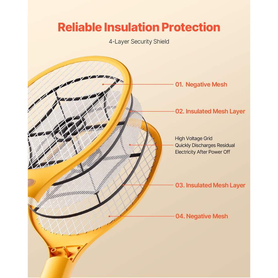 Rechargeable 500mAh Battery Electric Fly Swatter 3 Layers Mesh Fly Killer Racket Powerful Indoor Outdoor Mosquito Killer