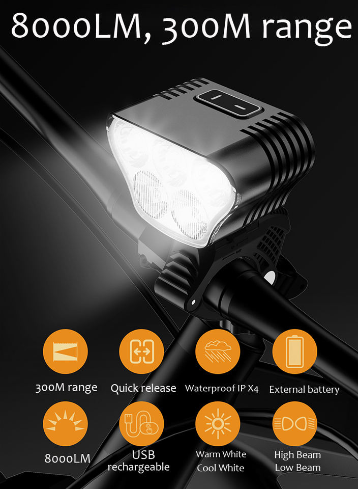 Neutral English Packaging หรือ OEM การปรับแต่ง: ชาร์จไฟได้หัวหลุม70cc จักรยานมีไฟ Usb จักรยานด้านหน้าไฟ8000 Lumens จักรยานแสง