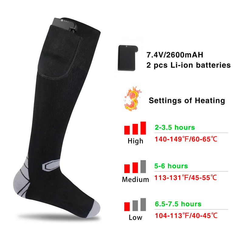 ถุงเท้าอุ่นแบบชาร์จไฟได้7.4V พร้อมการควบคุม3ระดับถุงเท้าอุ่นรองเท้ากีฬากลางแจ้งสำหรับอากาศหนาว