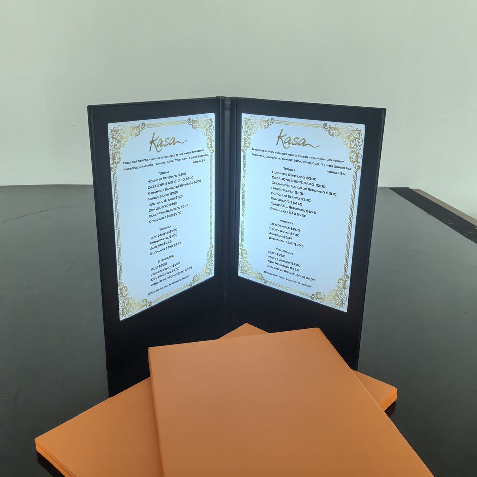ป้ายเมนู LED แบบชาร์จไฟได้ พร้อมขาตั้ง แบบสองหน้า ขนาด A4 สำหรับร้านอาหาร ร้านกาแฟ ร้านขนม