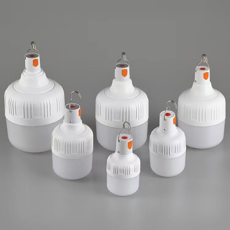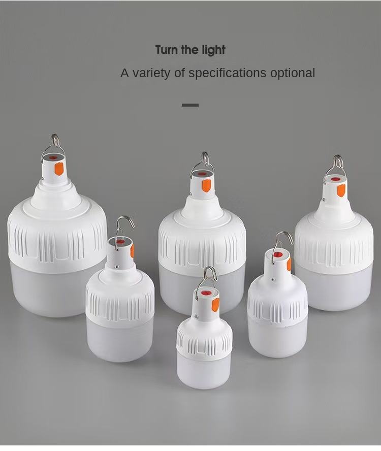 หลอดไฟ LED แบบชาร์จไฟได้ พร้อมพอร์ต USB และแบตเตอรี่ แบบแขวนพร้อมตะขอ สำหรับตั้งแคมป์กลางแจ้ง และใช้ในบ้าน ไฟฉุกเฉินสำหรับเต็นท์