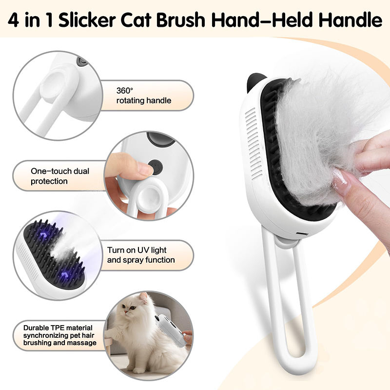 แปรงกรูมมิ่งสัตว์เลี้ยงแบบชาร์จไฟได้ พร้อมไอน้ำและสเปรย์ สำหรับกำจัดขนและนวดสัตว์เลี้ยง