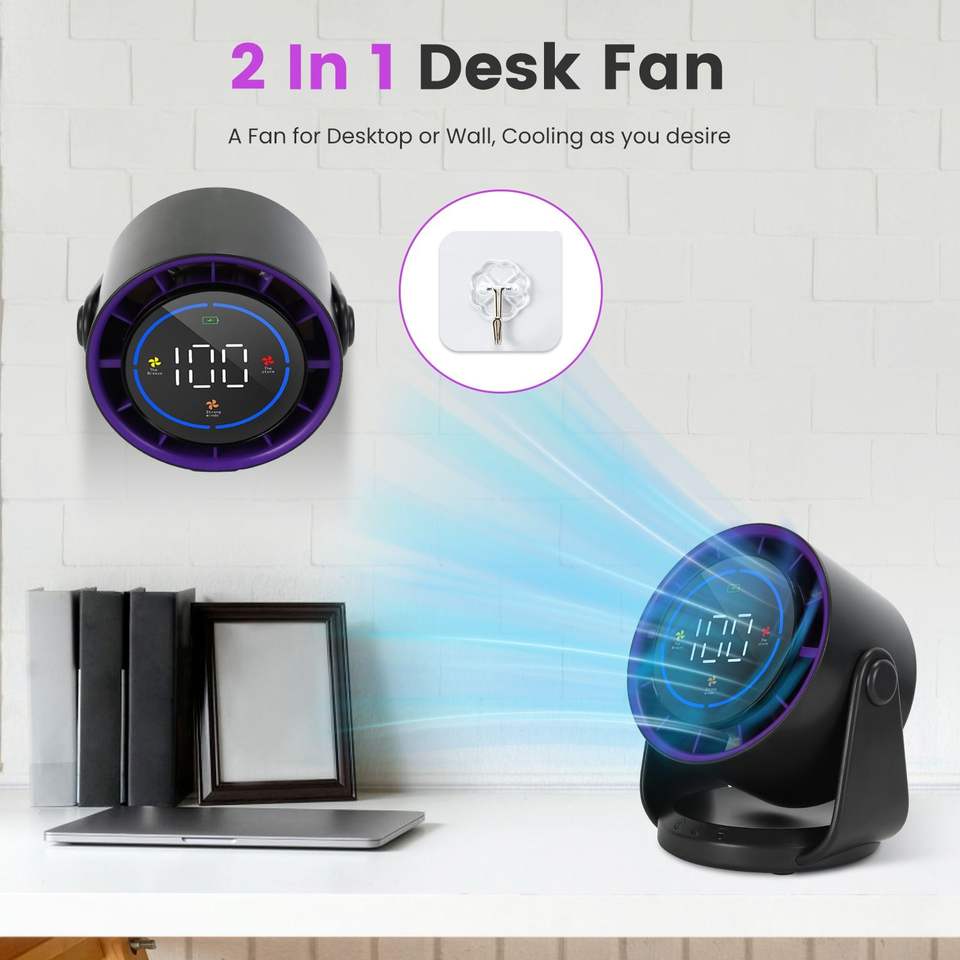 พัดลมตั้งโต๊ะขนาดเล็กแบบชาร์จไฟได้ 100 ระดับความเร็ว พัดลมติดผนังแบบใช้แบตเตอรี่ ปรับมุมเอียงได้ 120 องศา พกพาสะดวกสำหรับใช้ในบ้านและสำนักงาน