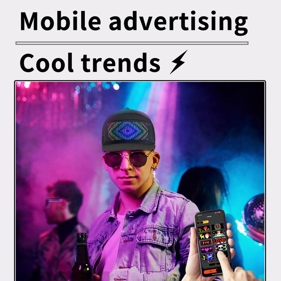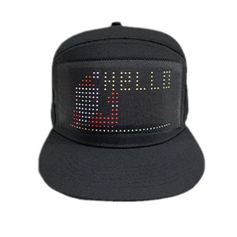 หมวกเบสบอล LED แบบชาร์จไฟได้ รองรับหลายภาษา พร้อมแอปพลิเคชันสำหรับแสดงผลข้อมูลแบบเลื่อนได้ ใช้สำหรับโฆษณา
