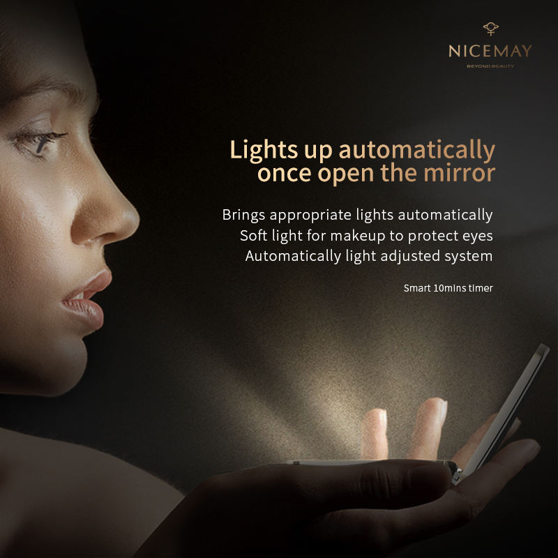 กระจกแต่งหน้า LED ขนาดเล็กพับเก็บได้