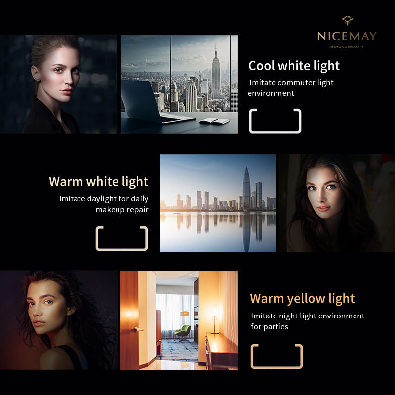 กระจกโต๊ะเครื่องแป้งพับได้แบบชาร์จไฟได้กระจกแต่งหน้าแบบพกพาไฟ LED หน้าจอสัมผัสสำหรับเดินทาง