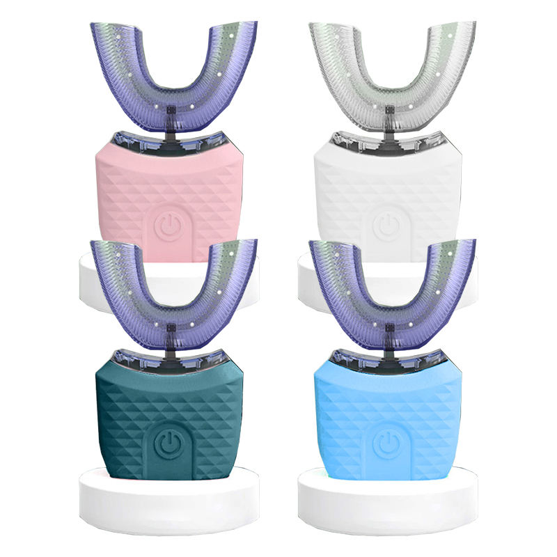 แปรงสีฟันไฟฟ้ารูปตัวยูแบบชาร์จไฟได้360พกพาแปรงสีฟันไฟฟ้าขนาดมินิสำหรับเดินทางทำจากซิลิโคนไฟฟอกฟันขาวอัลตร้าโซนิค