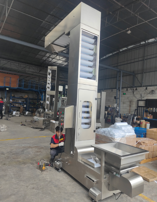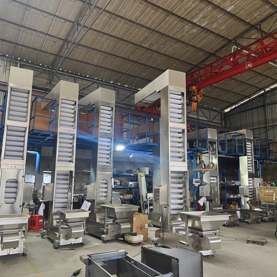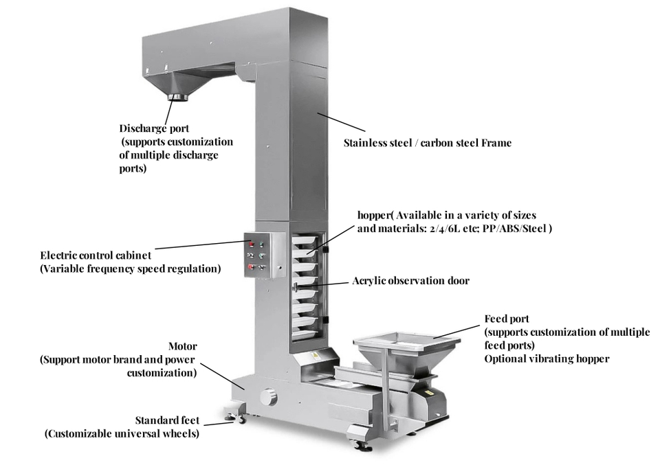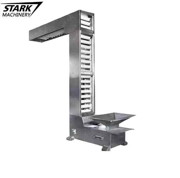 ระบบสายพานลำเลียงแนวตั้งแบบลูกสูบพร้อมถังลิฟต์สแตนเลสสำหรับยกอาหารเม็ดจำนวนมาก